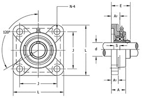 | Bearing Type | Standard duty square flange unit, set screw locking |